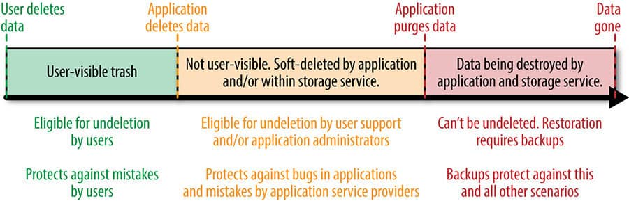 In a case where the application deletes the data, the user cannot retrieve it. Though it can be retrieved by the administrators and the support people. This protects the permanent data loss due to application bugs.
